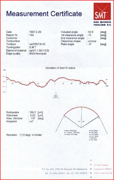 A certificate is a graphical display of the cutting edge. By an optical measurement, it is giving the radius size and the related form accuracy, including related angles.